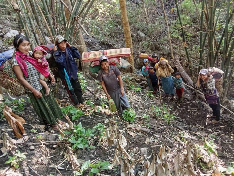 ပုံစာ – တောထဲတွင် စစ်ဘေးရှောင်နေရသည့် အုံကျေးရွာဒေသခံများ။