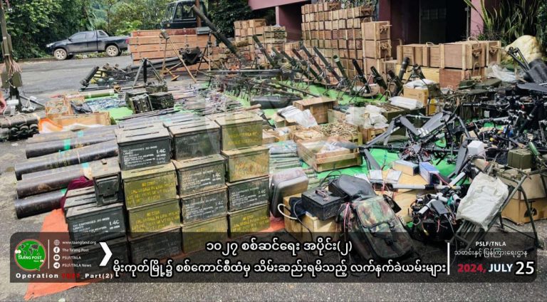 မန္တလေးတိုင်း၊ မိုးကုတ်မြို့နယ်ရှိ စစ်ကောင်စီတပ်စခန်းအားလုံးကို တအာင်းအမျိုးသားလွတ်မြောက်ရေးတပ်မတော်- TNLAမှ ယမန်နေ့တွင် အပြီးသတ်သိမ်းပိုက်နိုင်ခဲ့ရာ စစ်သုံ့ပန်း ၃၀ ကျော်နှင့် လက်နက်မျိုးစုံ ၂၀၀ ကျော် သိမ်းဆည်းရမိခဲ့သည်ဟု PSLF/TNLA မှထုတ်ပြန်သည်။