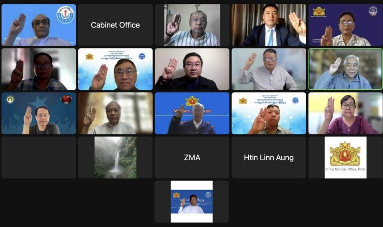 သို့သော်လည်း အမျိုးသားညီညွတ်ရေးအစိုးရ ဝန်ကြီးဌာနများ ဝန်ကြီး များ၏ အသုံးစရိတ်များနှင့် ပတ်သက်၍ ယနေ့အချိန်ထိ ထုတ်ပြန်ထားခြင်းမရှိသေးပေ။ ပုံစာ- ၇၁ ကြိမ်မြောက် အစိုးရ အဖွဲ့အစည်းဝေးတွင် တွေ့ရသည့် NUG ဝန်ကြီးများ။ Photo-NUG