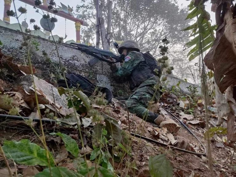ဓါတ်ပုံ – ပေးပို့ ပုံစာ – ရှေ့တန်းတစ်နေရာ၌ မြင်တွေ့နေရသော ကာ်ဘရာရဲဘာ်တစ်ဦး။