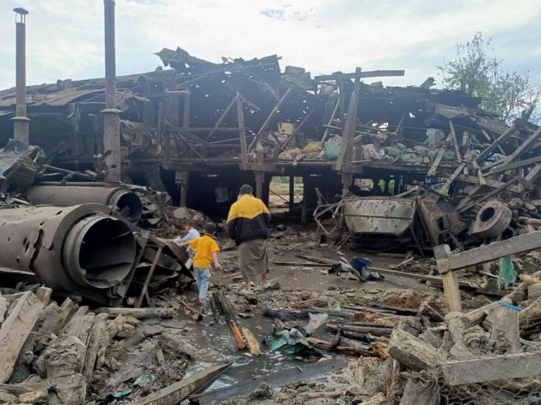 ပုံစာ- စစ်ကောင်စီ၏ ဗုံးကြဲတိုက်ခိုက်မှုကြောင့် ပျက်စီးသွားသည့် လက်ဖက်ခြောက်စက်ရုံ မြင်ကွင်း