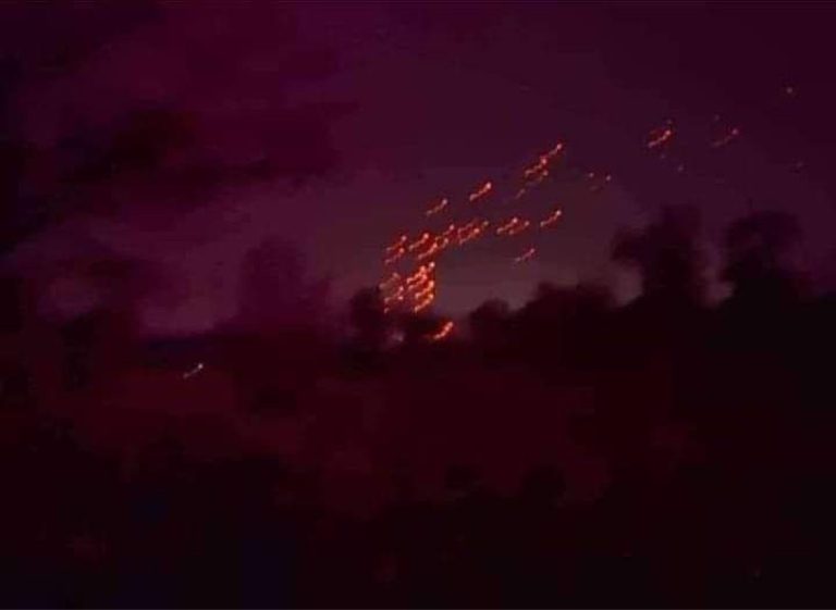 စစ်ကောင်စီတပ်က ယမန်နေ့ညပိုင်းက လက်နက်ကြီး ပစ်ခတ်မှုကို ကရင်နီအမျိုးသားများကာကွယ်ရေးတပ် KNDF ရဲဘော်များက မှတ်တမ်းရယူထားနိုင်ပြီး မီးရှူးမီးပန်းများသဖွယ် မီးပွင့်များ အတွဲလိုက်အဆင့်ဆင့်ပေါက်ကွဲဖွာထွက်လာသည်ကို တွေ့ရှိရသည်။