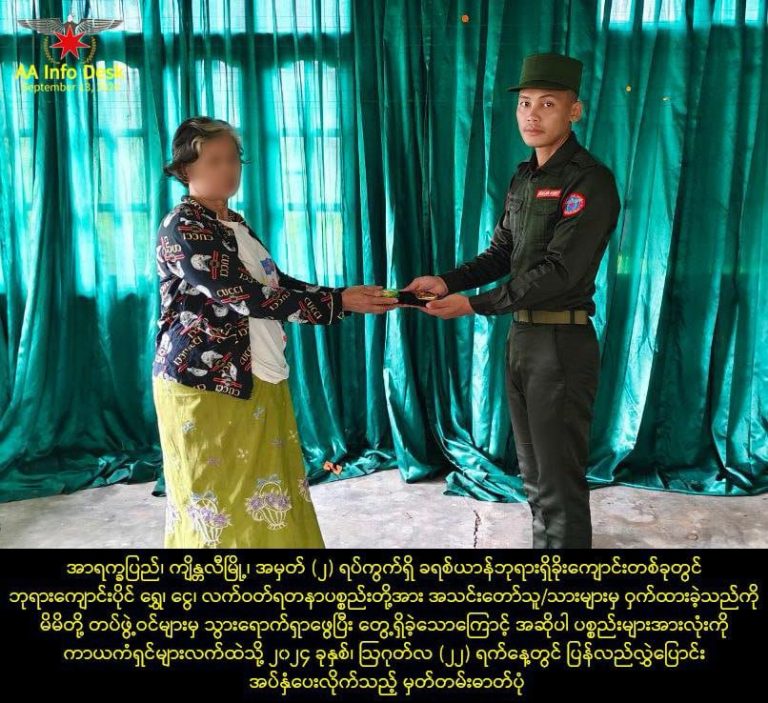ရခိုင်ပြည်နယ်၊ မြို့သိမ်းတိုက်ပွဲအတွင်း ဒေသခံများ၏ ပစ္စည်းများကို ခိုးယူသူများအား စုံစမ်းစစ်ဆေးပြီး အပြစ်ကျူးလွန်ခဲ့ကြောင်း ထင်ရှားသောသူများကို ထိုက်တန်သောအပြစ်များပေး၍ အရေးယူထားပြီးဖြစ်သည်ဟု အာရက္ခတပ်တော် AA က ယမန့်နေ့တွင် ထုတ်ပြန်သည်။