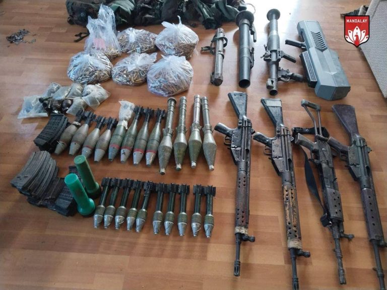 ပုံစာ – တိုက်ပွဲအတွင်းသိမ်းဆည်းရမိသည့် လက်နက်ခဲယမ်းများ။