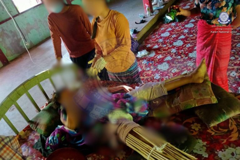 ပုံစာ – အောက်တိုဘာ ၂၇ ရက်တွင် လက်နက်ကြီးထိမှန်မှုကြောင့် ဒဏ်ရာရရှိခဲ့သည့် ငနွားဆိပ်ကျေးရွာက အသက် ၄ နှစ်အရွယ် ကလေးငယ်တစ်ဦး။ ဓာတ်ပုံ – KNU