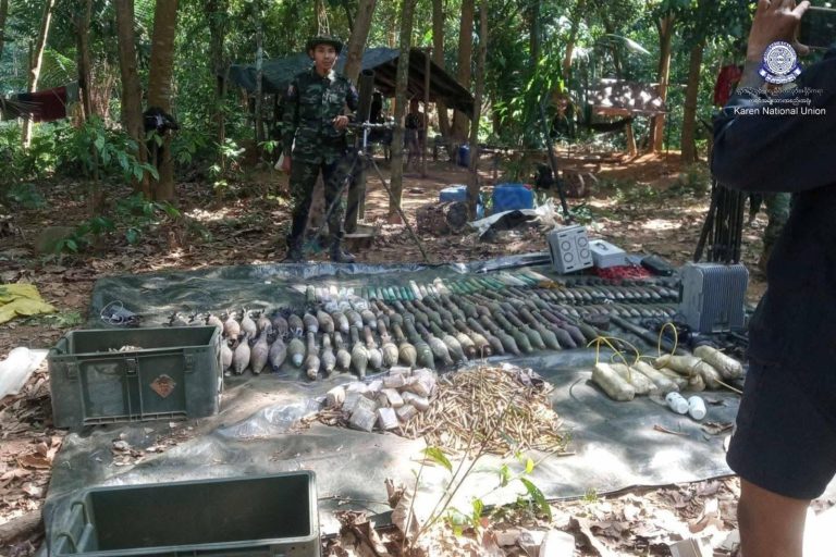 ဓါတ်ပုံ − မာထောစခန်းအား သိမ်းပိုက်ရရှိစဉ်တွင်း သိမ်းဆည်းရမိသော လက်နက်ခဲယမ်းများ။