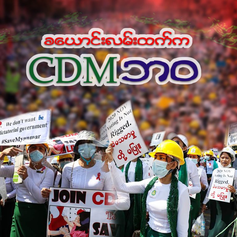 စစ်တပ်အာဏာသိမ်းတာကို လက်မခံနိုင်လို့ နိုင်ငံအနှံ့က အစိုးရဝန်ထမ်း အလွှာစုံဟာ အကြမ်းမဖက် အာဏာဖီဆန်ရေး CDM မှာ ပါဝင်ခဲ့ကြပါတယ်။ ပညာရေးဌာန၊ ကျန်းမာရေးဌာန၊ ဆောက်လုပ်ရေးဌာန၊ မီးရထားဌာန၊ စွမ်းအင်ဌာန စတဲ့ ဌာနဆိုင်ရာက ဝန်ထမ်းအများအပြား CDM လုပ်ခဲ့ကြပါတယ်။