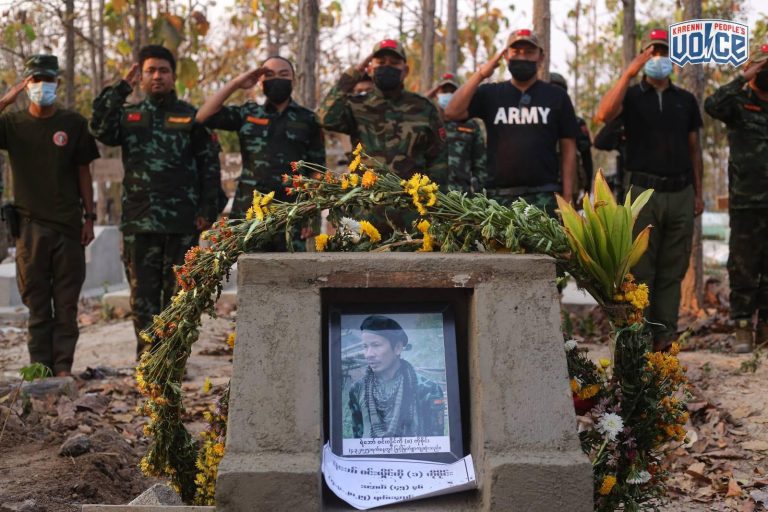 ပုံစာ – ပျဉ်းမနားစစ်ကြောင်းမှူး ရဲဘော်ကိုစိုင်း၏ နာရေးမြင်ကွင်းအား တွေ့မြင်ရစဥ် (ဓာတ်ပုံ-Karenni People’s Voice)