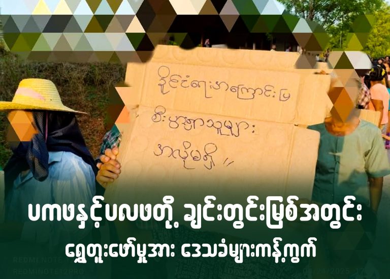 ပုံစာ – ရွှေတူးဖော်မှုအား အလိုမရှိကြောင်း ဒေသခံပြည်သူများ ဧပြီလ ၂၄ ရက်နေ့တွင် ဆန္ဒပြကန့်ကွက်