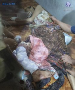 ထိခိုက်ဒဏ်ရာရရှိခဲ့သူများမှာ အသက် (၉၁) နှစ်အရွယ် ဒေါ်ကျင်အေး၊ အသက် (၅၀) နှစ်အရွယ် ဒေါ်မာမာ၊ အသက် (၁၀) နှစ်အရွယ် မသီရိနိုင်နှင့် အသက် (၅၈) နှစ်အရွယ် ဦးစိုး တို့ဖြစ်ကြောင်း KNU ကအတည်ပြုထားသည်။