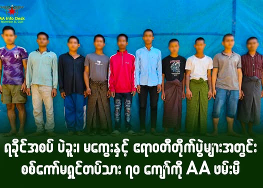 ရခိုင်အစပ် ပဲခူးတိုင်း၊ မကွေးတိုင်းနှင့် ဧရာဝတီတိုင်းတို့တွင် ဖြစ်ပွားနေသည့် တိုက်ပွဲများအတွင်း စစ်ကော်မရှင်ဘက်မှ ထွက်ပြေးနေကြသူများအပြင် လက်နက်ချ အလင်းဝင်လာသူ ၇၀ ကျော် ရှိနေသည်ဟု AA က နိုဝင်ဘာလ ၁၁ ရက်တွင် ထုတ်ပြန်လိုက်သည်။