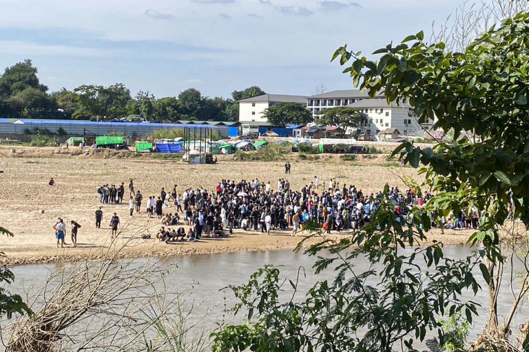 ကရင်ပြည်နယ်၊ ထိုင်းမြန်မာနယ်စပ်၊ မင်းလက်ပံရှိ ကာစီနိုဝင်းများတွင် ကျားဖြန့်အလုပ်များ လုပ်ကိုင်ခဲ့သည်ဟု ယူဆရသော လုပ်သားများသည် သောင်ရင်းမြစ်တဖက်ကမ်းရှိ ထိုင်းနိုင်ငံ၊ မဲ့ကိုကင်းရွာသို့ ကူးရန် စောင့်ဆိုင်းနေသည်ဟု သံလွင်ခက်၏ နယ်မြေခံသတင်းထောက်က သတင်းပေးပို့သည်။
