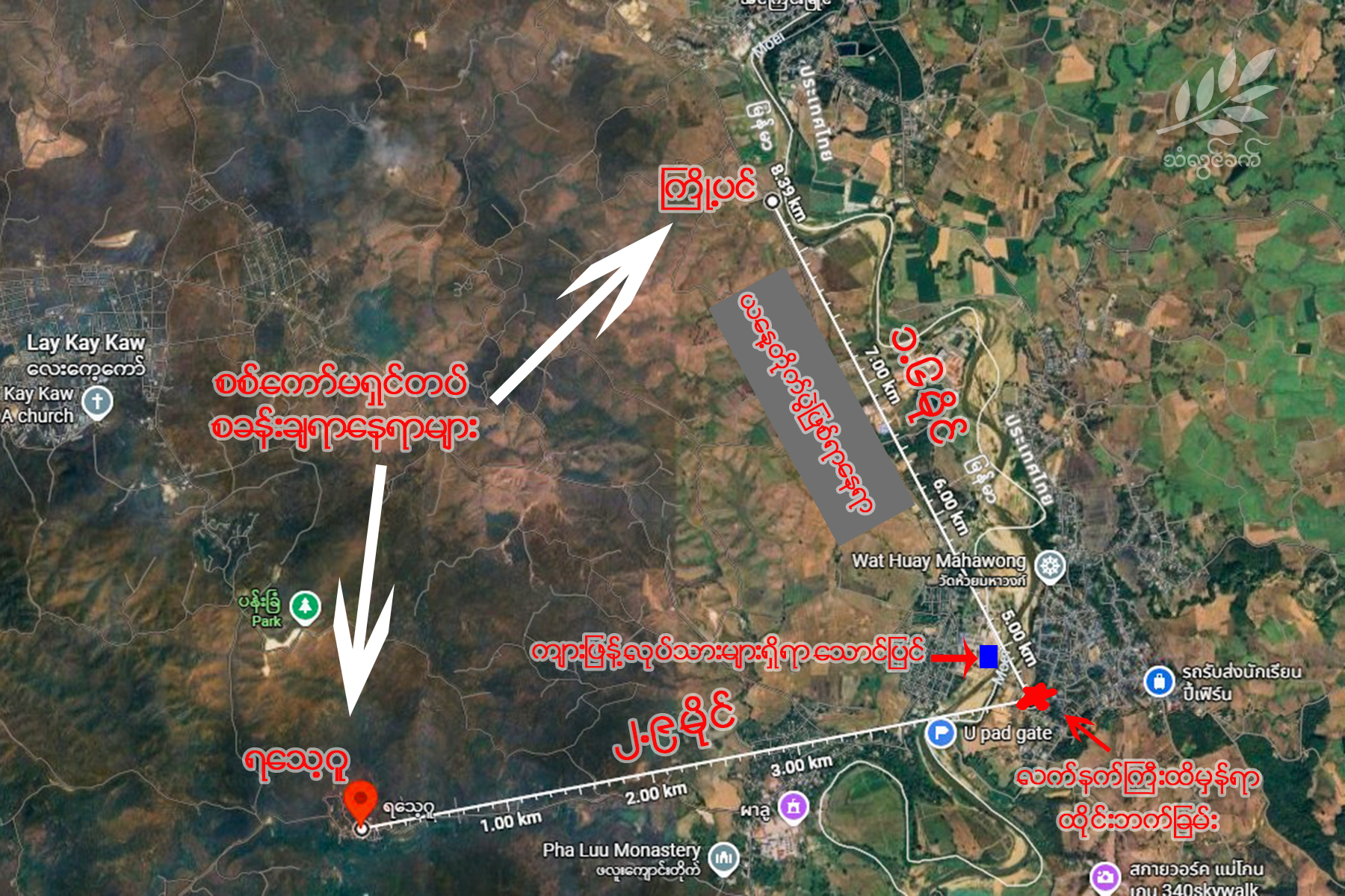 အဆိုပါတပ်စွဲထားသော နေရာများ ယခုလက်နက်ကြီးထိမှန်ခံထားရသော ထိုင်းဘက်ခြမ်းနေအိမ်အကွာအဝေးမှာ ၁.၆ မိုင်အကွာအဝေးတွင်ရှိသည်။