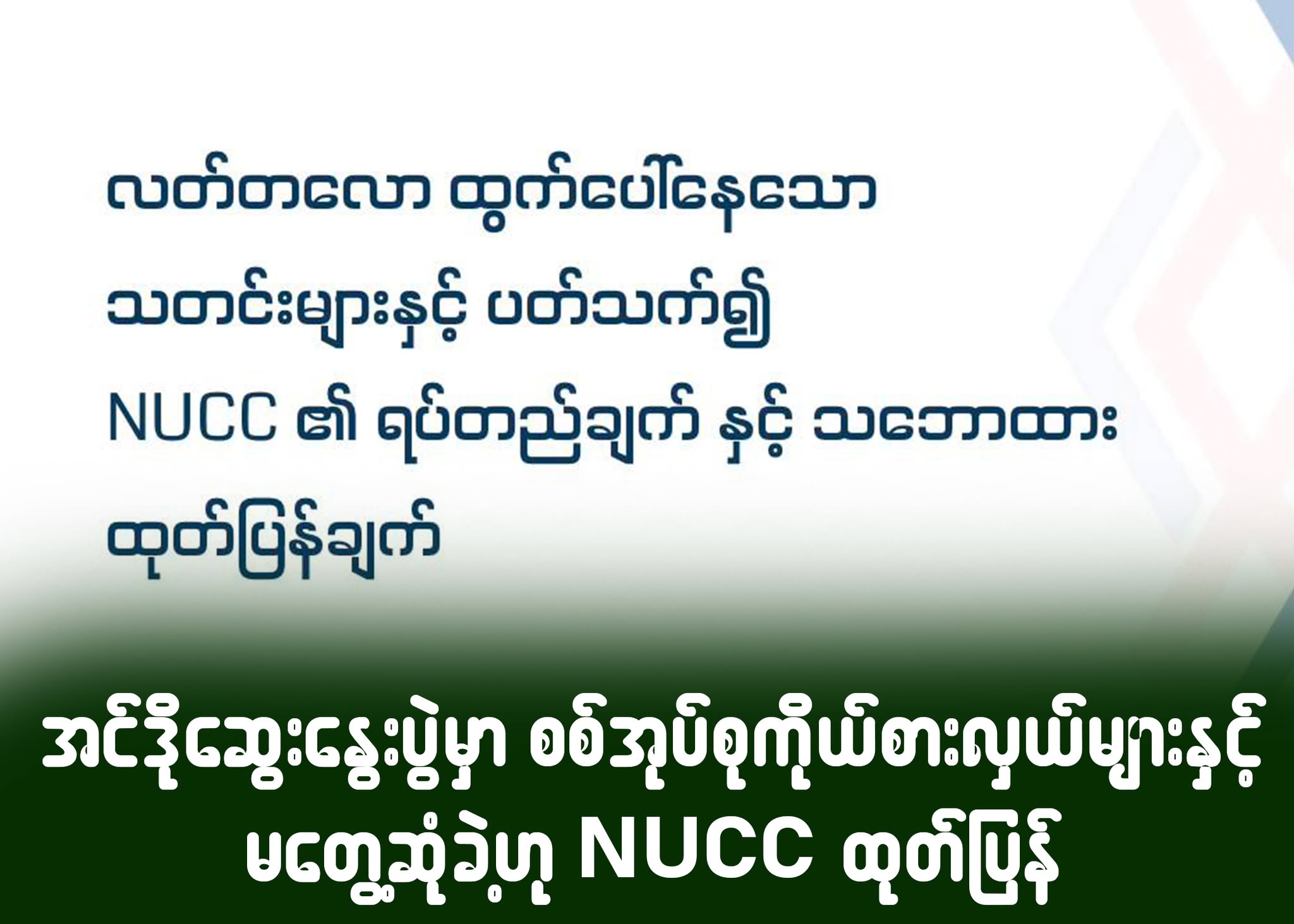 ပြီးခဲ့သည့် ရက်ပိုင်းများအတွင်းက တော်လှန်ရေး အင်အားစုများအတွင်း စစ်တပ်နှင့် ခိုးတွေ့မှုများရှိနေသည်ဟူသော သတင်းများထွက်ပေါ်ခဲ့ပြီးနောက် NUCC အနေဖြင့် ယခုကဲ့သို့ ၎င်းတို့၏ ရပ်တည်ချက်နှင့် သဘောထားကို အများပြည်သူသိရှိစေရန် အသိပေးထုတ်ပြန်ချက်ခြင်းဖြစ်သည်။
