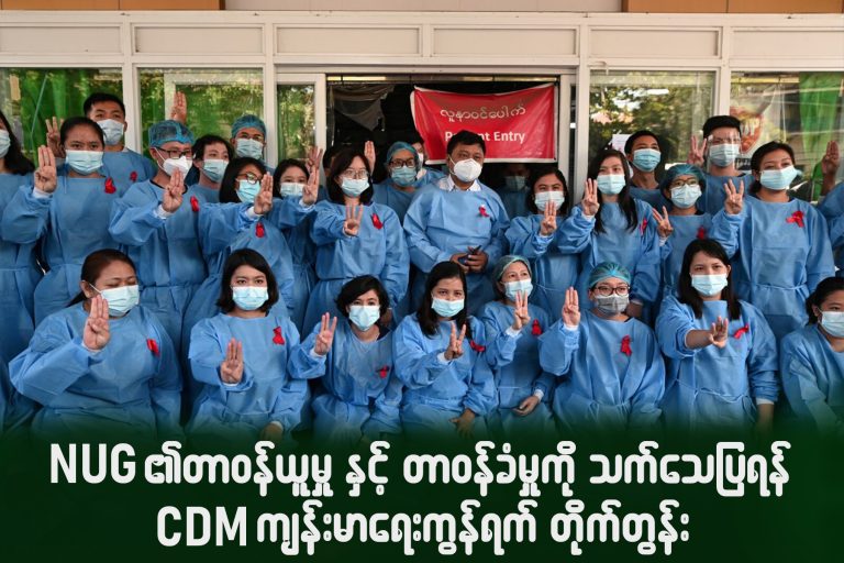 အမျိုးသားညီညွတ်ရေးအစိုးရ (NUG) အနေဖြင့် ပြည်သူလူထု ယုံကြည်ကိုးစားထိုက်သော၊ စနစ်တကျ တာဝန်ယူဖြေရှင်းနိုင်သော အစိုးရဖြစ်ကြောင်း လက်တွေ့သက်သေပြရန် CDM ကျန်းမာရေးကွန်ရက် (CDMMN) က တိုက်တွန်းလိုက်သည်။