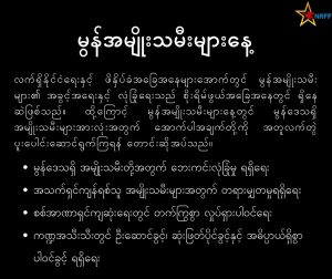 လက်ရှိတွင် မွန်ပြည်နယ်အတွင်း အမျိုးသမီး ၇၆,၀၀၀ ကျော် နေရပ်စွန့်ခွာနေရပြီး စစ်ကော်မရှင်၏ လက်နက်ကြီးနှင့် လေကြောင်းတိုက်ခိုက်မှုများအတွင်း ကလေးငယ်များပါ ထိခိုက်ဒဏ်ရာ ရရှိနေသည်။