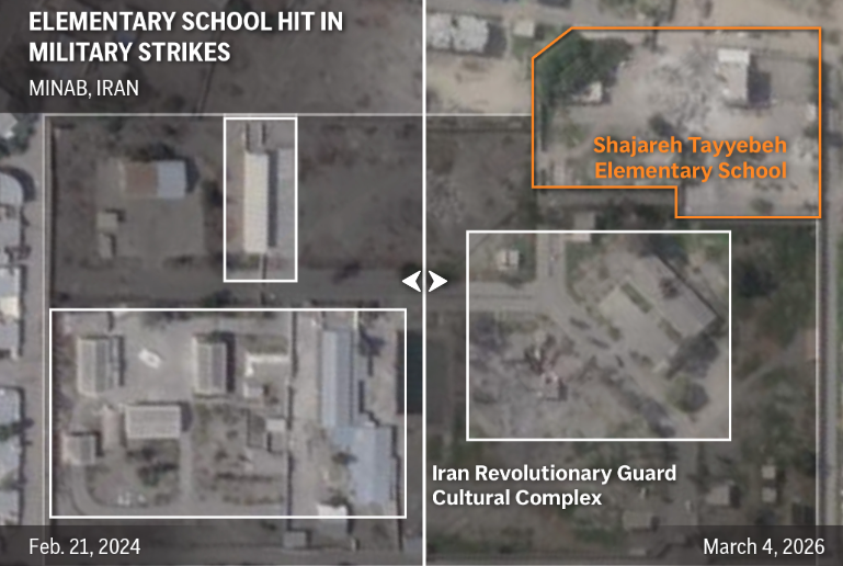 အီရန်နိုင်ငံတောင်ပိုင်းရှိ မူလတန်းကျောင်းတစ်ခု ပေါက်ကွဲမှုဖြစ်ပွားပြီး ကလေးငယ်များအပါအဝင် လူပေါင်း ၁၆၀ ကျော် သေဆုံးခဲ့ရသည့် ဖြစ်စဉ်မှာ အမေရိကန်၏ လေကြောင်းတိုက်ခိုက်မှုကြောင့် ဖြစ်နိုင်ခြေရှိကြောင်း ဂြိုဟ်တုဓာတ်ပုံများနှင့် ကျွမ်းကျင်သူများ၏ ခွဲခြမ်းစိတ်ဖြာချက်များကို ကိုးကား၍ Associated Press (AP) သတင်းဌာနက ဖော်ပြလိုက်သည်။
