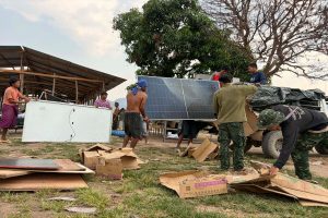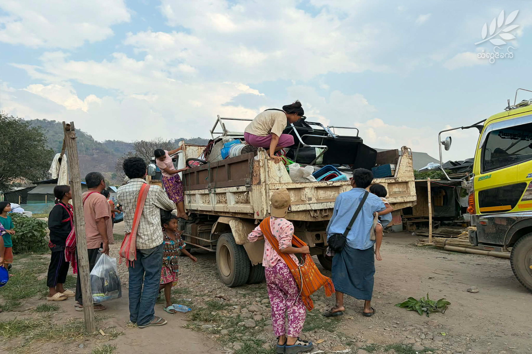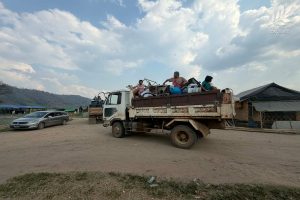 ပုံစာ – နှစ်ရက်ဆက် ဒရုန်းဖြင့် ဗုံးကြဲမှုကြောင့် ပလောတပို့စစ်ရှောင်များ စခန်းကို စွန့်ခွာနေကြစဉ်/ဓါတ်ပုံ – သံလွင်ခက်