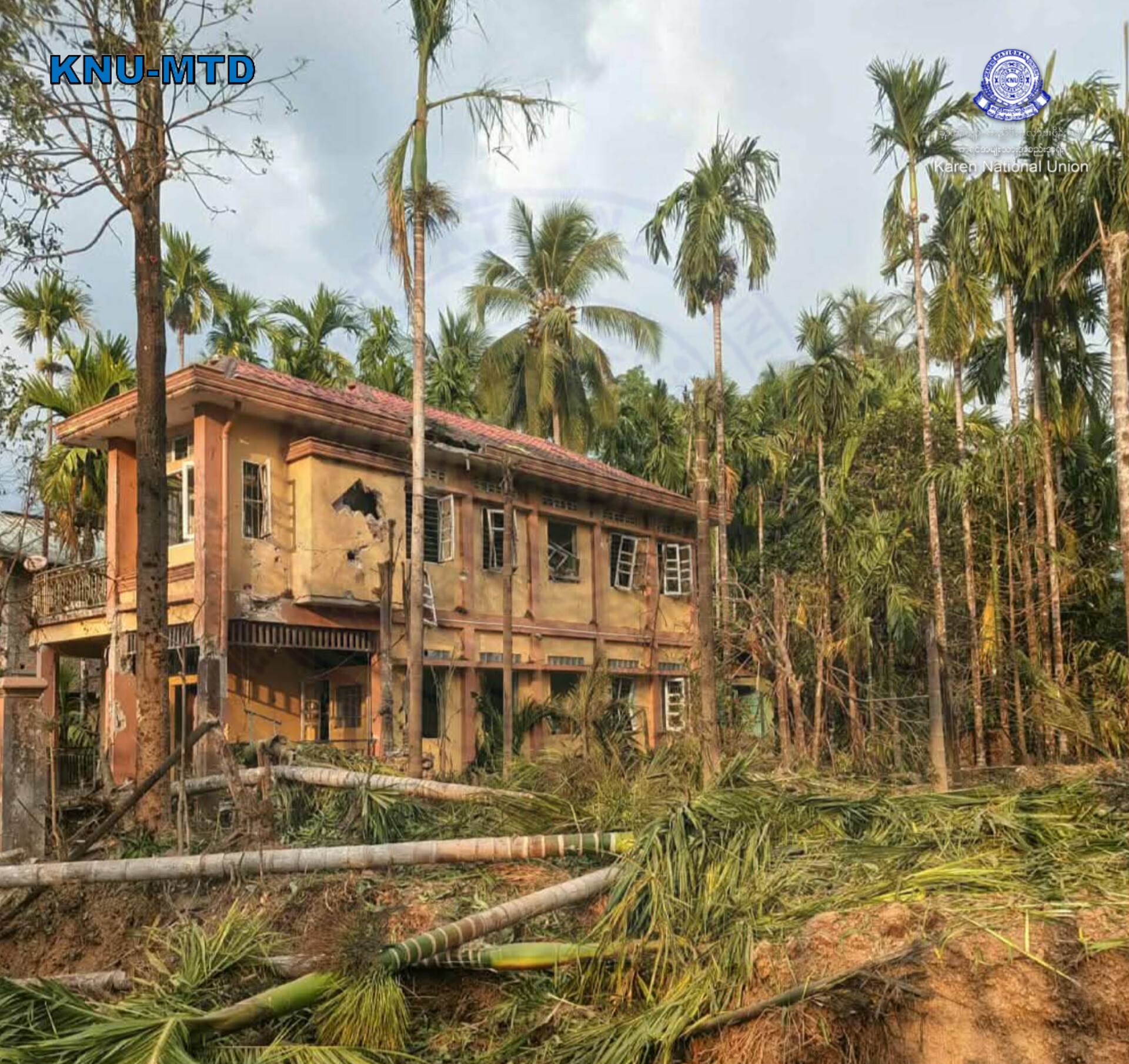 ပုံ- ထိခိုက်ပျက်စီးသွားသော အိမ် ၁ လုံးအားတွေ့ရစဉ် (ကေအန်ယူ)