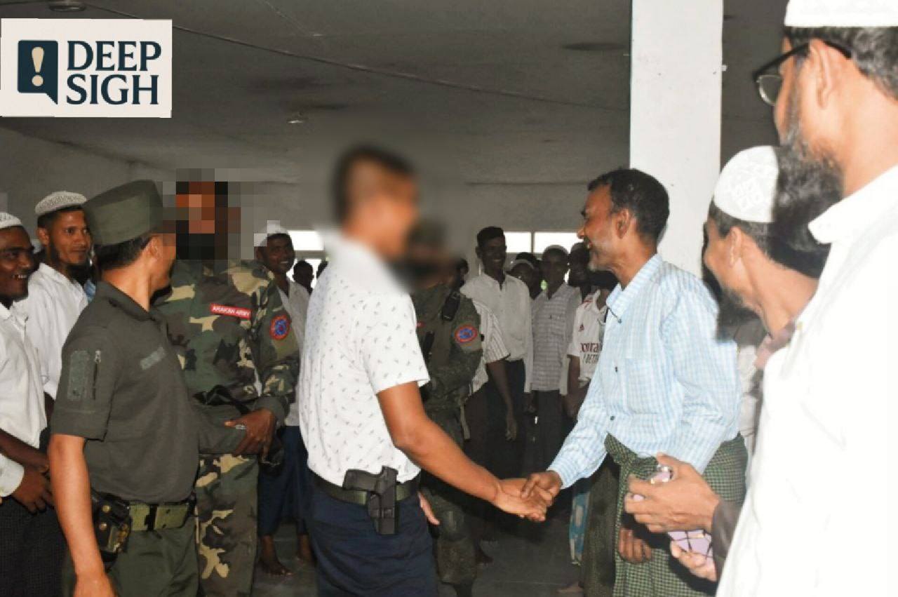 ပုံစာ – ရခိုင်ပြည်နယ်၊ မြောက်ဦးခရိုင်အတွင်းရှိ ကျေးရွာအသီးသီးတွင် နေထိုင်ကြသော မူစလင်အဖွဲ့ အစည်းများက ကြီးမှူးကျင်းပသည့် ဝါဖြေပွဲ (Eid al-Fitr) သို့ ULA/AA တာဝန်ရှိသူများ သံလွင်ခက်/မတ် ၁၇။ တက်ရောက် ဂုဏ်ပြု ( ပုံ – Deep Sigh)