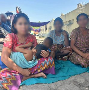 စစ်တွေမြို့နယ်မှ မြေပုံသို့ စစ်ဘေးရှောင်လာသည့် အသက် (၄၅) နှစ်အရွယ် ဒေါ်မသောင်းစိန် (အမည်လွဲ) က “မြေပုံက မြို့အရပ်ဖြစ်လို့ အလုပ်တွေ ရနိုင်မလားဆိုပြီး လာကြတာပါ။ အခု မြေပုံရောက်တော့လည်း အလုပ်အကိုင်က မရှိဘူး။ အဝတ်လျှော်တာတို့၊ မီးပူတိုက်တာတို့လို အလုပ်မျိုးတွေ လိုက်ရှာသေးတယ်။ ဒါပေမဲ့ လူတွေမှာက ကိုယ့်ဖောက်သည်နဲ့ကိုယ် ရှိပြီးသားပါ။ အခုက အလှူခံစားနေရတယ်။ တစ်ရက်မှာ ငါးထောင်၊ ရှစ်ထောင်လောက် ရတာလည်း ရှိတယ်။ အဲဒါနဲ့ စားဝတ်နေရေး မဖူလုံပါဘူး” ဟု ပြောသည်။