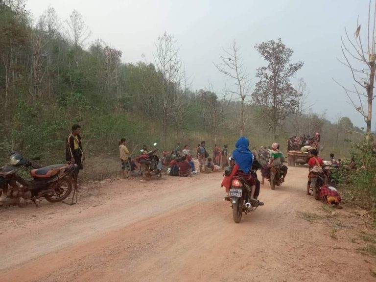 ပုံစာ–ဘောလခဲမြို့နယ်မှ စစ်ကြောင်းနှစ်ကြောင်းထိုးလာမှုကြောင့် ဒီးမော့ဆို ဒေါတမကြီး တစ်ဝိုက်ရှိ ပြည်သူများထွက်ပြေးတိမ်းရှောင်နေရမှု ။