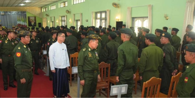 ပုံစာ–ထိုးစစ်ဆင်နေသည့် ကယားပြည်နယ်က တပ်ဖွဲ့ဝင်များကို ဒုတိယစစ်ကောင်စီခေါင်းဆောင်က မတ်လ၁၅ရက်နေ့တွင် သွားရောက်တွေ့ဆုံစည်းရုံးခဲ့သည့်မြင်ကွင်း။