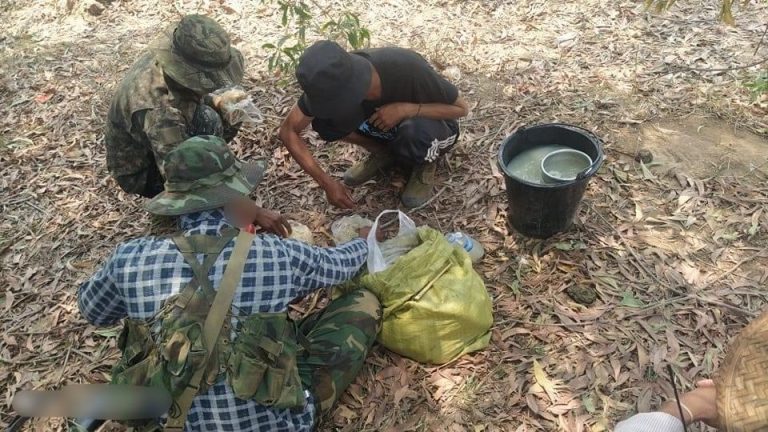 ပုံစာ–ဝန်းသိုအခြေစိုက် ကာကွယ်ရေး တပ်ဖွဲ့ဝင်များ ထမင်းစားနေသည့် မြင်ကွင်း။