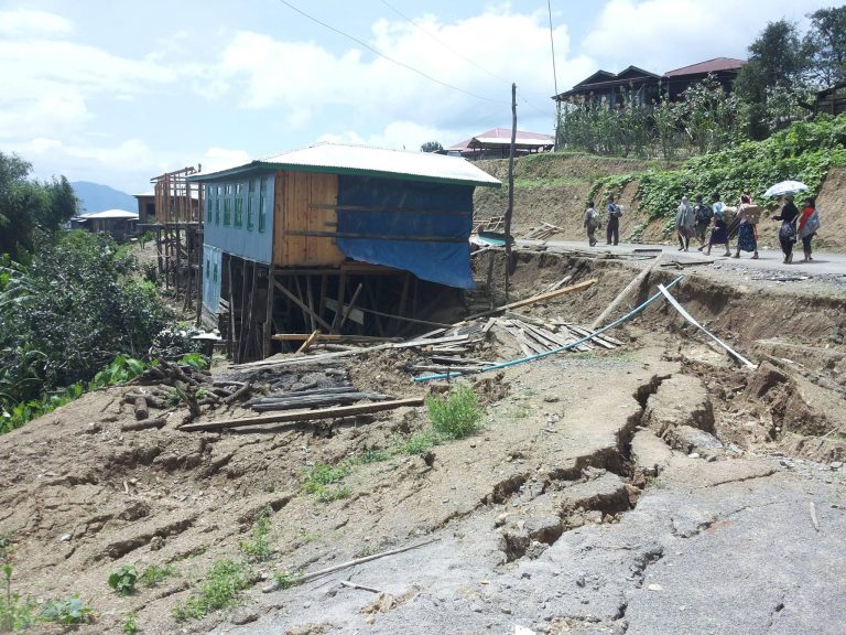 ပုံစာ-၂၀၁၅ ခုနှစ်တွင် မိုးသည်းထန်ပြီး မြေပြိုမှုကြောင့် ဟားခါးမြို့ရှိ နေအိမ်များ ထိခိုက်ပျက်စီးမှု မြင်ကွင်း။