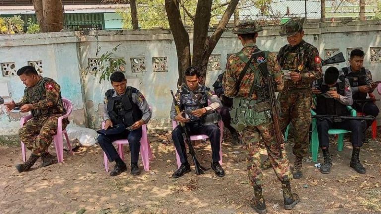 ပုံစာ– (လုံခြုံရေးယူနေသည့် စစ်ကောင်စီတပ်ဖွဲ့ဝင်များမြင်ကွင်း/ပုံဟောင်း)