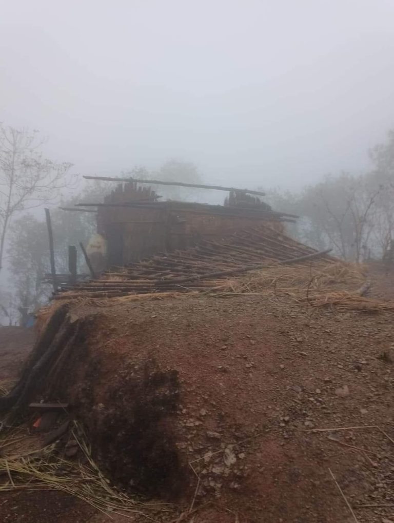ပုံစာ–မုန်တိုင်းကြောင့် မင်းတပ်မြို့နယ်အတွင်းမှ နေအိမ်တချို့ ထိခိုက်ပျက်စီးမှုများ ။