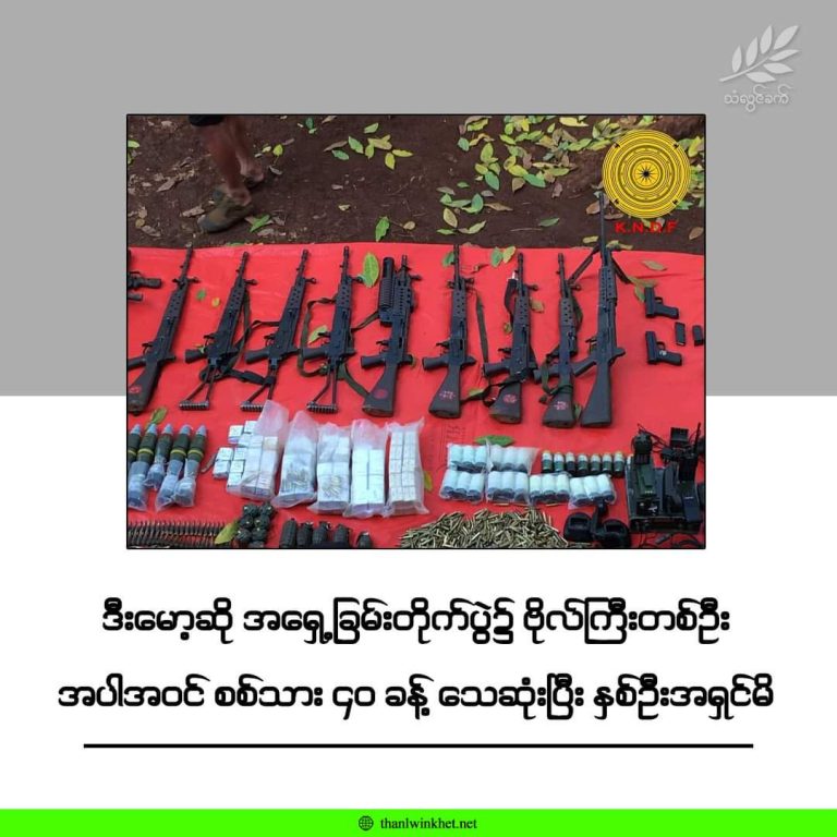 ထို့ပြင် စစ်ကောင်စီတပ်များထံမှ MA-1 (၈)လက်၊ MA-2(၁)လက်၊ MA-3 (၃)လက်၊ MA-4 (၁)လက်၊ 9mm Pistol (၁)လက်၊ RPG (၂)လက် နှင့် ဆက်စပ်ခဲယမ်းမီးကျောက်များ၊ ဆက်သွယ်ရေးပစ္စည်းများ နှင့် စစ်အသုံးအဆောင်အမြောက်အများ သိမ်းစည်းရရှိခဲ့ပြီး ရန်သူသုံ့ပန်း ၂ဦး အားအရှင်ဖမ်းဆီးရမိခဲ့သည်။