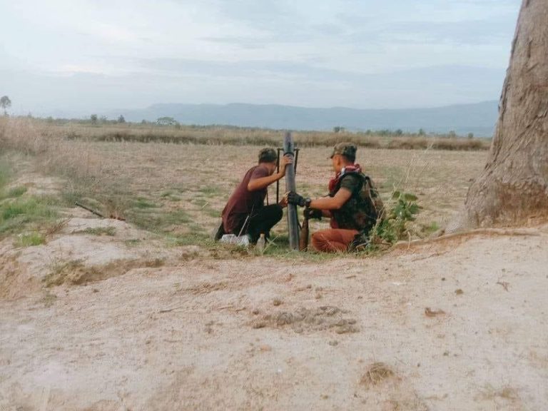 ပုံစာ–ဂန့်ဂေါ်မြို့နယ်ရှိ တောင်ခင်ရန်းရဲစခန်းကို လက်နက်ကြီးဖြင့် ပစ်ခတ်နေမှု။
