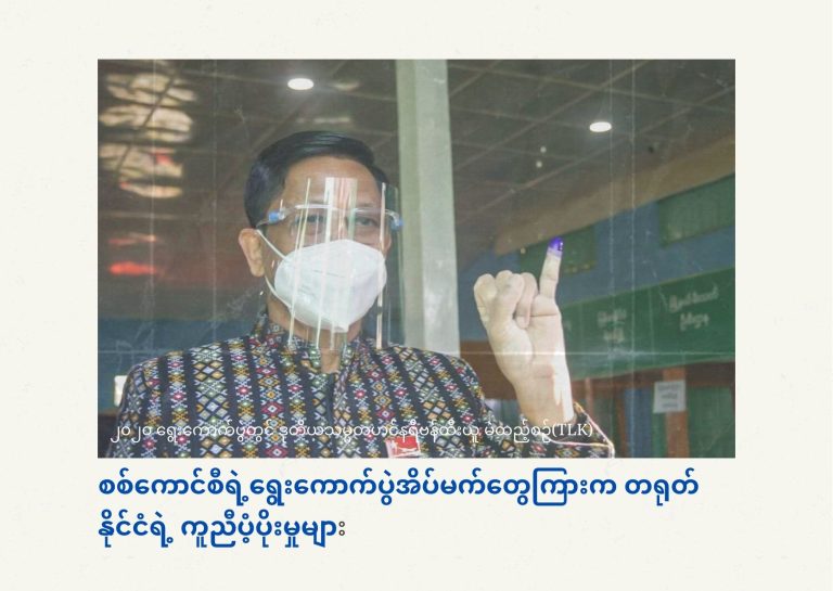 ” မြန်မာနိုင်ငံမှာ ရွေးကောက်ပွဲဖြစ်ဖို့ တရုတ်နိုင်ငံကလည်း လိုလားပါတယ်” ဟု တရုတ်နိုင်ငံဘက်က ပြောဆိုခဲ့ဖူး သည်။ စစ်ကောင်စီကလည်း သက်တမ်း ၆ လ ထပ်မံတိုးမြှင့်ခဲ့သလို ရွေးကောက်ပွဲလုပ်နိုင်ရေးကို ပထမဦးစားပေး လုပ်ငန်းစဥ်အဖြစ် ပြောင်းလဲလိုက်ပါသည်။ တရုတ်နိုင်ငံကလည်း စစ်ကောင်စီအိပ်မက်ကိုအကောင်အထည်ဖော် နိုင်ရန် ကူညီပံ့ပိုးမှုများ ဆက်တိုက်ပြုလုပ်လာခဲ့သည်။