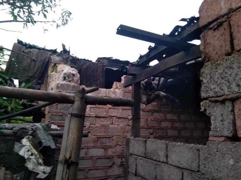 Photo Crd-စစ်ကောင်စီလက်နက်ကြီးထိမှန်သည့် ဒေသခံနေအိမ်မြင်ကွင်း။