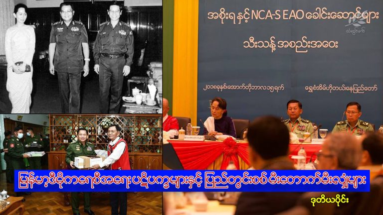 နိုဝင်ဘာလတွင် ရှမ်းပြည်နယ် မိုင်းဆတ်မြို့၌ တွေ့ဆုံခဲ့ကြစဥ်။ (ဓာတ်ပုံ –တပ်မတော်သတင်းမှန်ပြန်ကြားရေးအဖွဲ့)