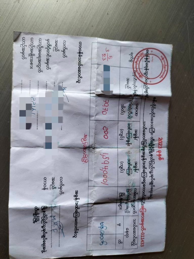ပုံစာ – ဖမ်းဆီးခံခဲ့ရသည့် လောင်စာဆီကားနှင့် ဖမ်းဆီးခံရသည့် အခေါက်တွင် ထီးချိုင့်မြို့နယ် ပြည်သူ့အုပ်ချုပ်ရေးအဖွဲ့ထံ အခွန်ဆောင်ထားသည့် ပြေစာ