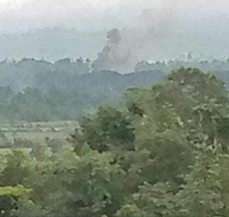 ပုံစာ – ဂန့်ဂေါခရိုင်၊ မင်းရွာရဲစခန်းကို ယနေ့နံနက်ပိုင်းတွင် မီးရှို့ဖျက်ဆီးနေစဥ်။
