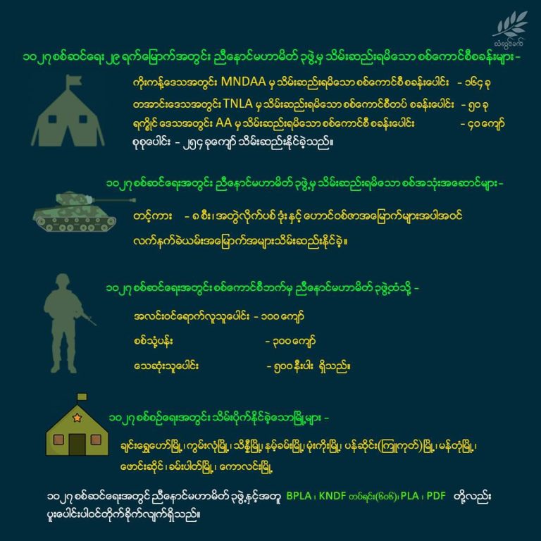 တအာင်းပြည်နယ်မှာလည်း စစ်ကောင်စီတပ်ရဲ့ စခန်းကြီး/ငယ် ၅၀ ကို TNLA က သိမ်းပိုက်ရရှိထားပါတယ်။