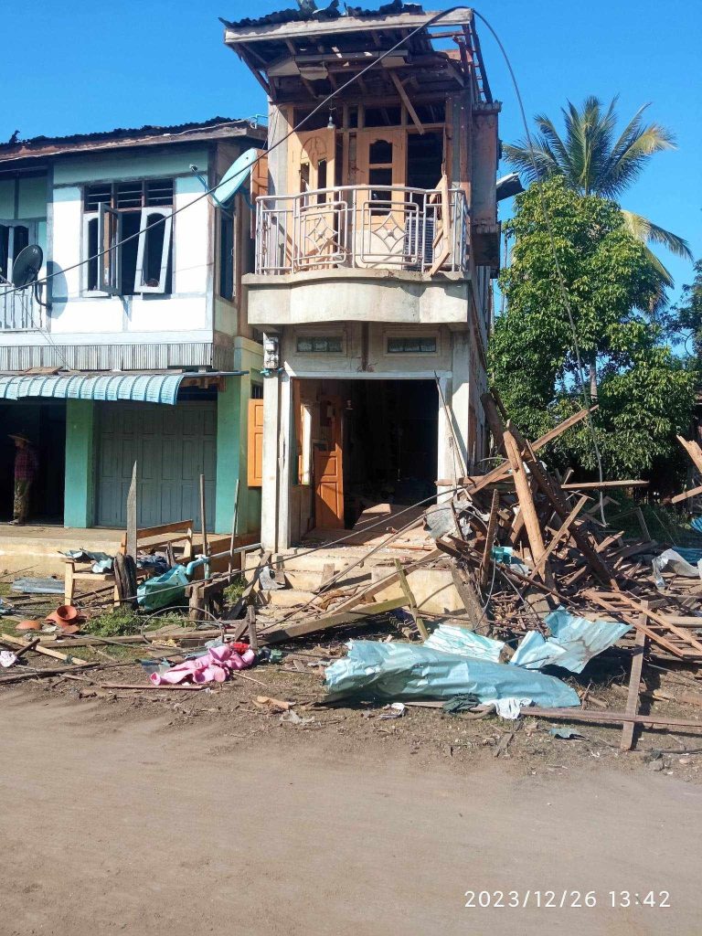 ပုံစာ – စစ်ကောင်စီလေကြောင်းတိုက်ခိုက်မှုကြောင့် မိုးတားလေးကျေးရွာရှိ နေအိမ်နှင့် အဆောက်အအုံများ ပျက်စီးမှု။