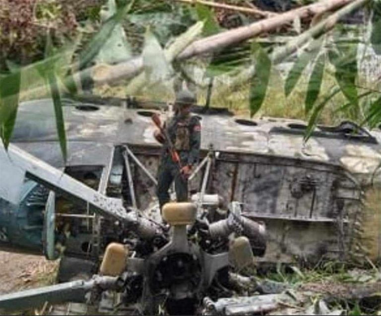 ပုံစာ-ရခိုင်ပြည်နယ်နှင့် ချင်းပြည်နယ် ပလက်ဝ စစ်ဆင်ရေးအတွင်း စစ်ကောင်စီရဟတ်ယာဉ် တစ်စီးကို ရက္ခိုင့်တပ်တော် AA က ပစ်ချထားနိုင်ခဲ့မှု ။