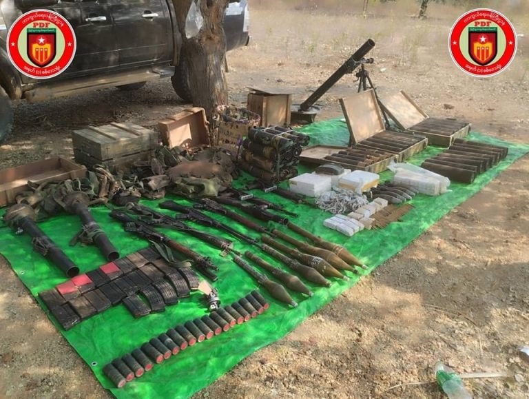 စစ်ကောင်စီတပ်ဘက်မှ လက်နက်မျိုးစုံ (၁၁) လက်၊ ဗုံးသီးမျိုးစုံ (၅၀) ကျော်၊ ကျည်မျိုးစုံ (၁၃၀၀) ကျော်၊ မီးကျည် (၂၀) ခန့်၊ ရှေ့ထွက်မိုင်း (၃) ခု၊ ကျည်အိမ် (၂၀) ကျော်နှင့် Jammer (၂) ခု သိမ်းဆည်းရသည်။