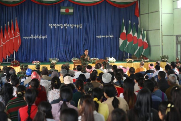 ပုံစာ – မတ်လ ၁၈ရက်တွင် နမ္မတူဒေသခံများကို TNLA ဗိုလ်ချုပ်တားဘုန်းကျော် တွေ့ဆုံစဉ်။