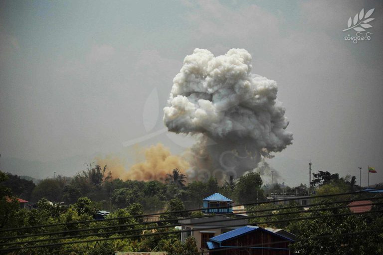 ထို့ပြင် စစ်ကောင်စီ၏ ဗုံးကြဲတိုက်ခိုက်မှုများကြောင့် ရွှေစည်းစိမ်ရပ်ကွက်အတွင်း နေအိမ်မီးလောင်မှုများနှင့် တံတား ၂ အနီးရှိ သိုလှောင်ရုံများ မီးလောင်မှုရှိနေသည်ဟု မြေပြင်သတင်းရင်းမြစ်များထံမှ သိရသည်။